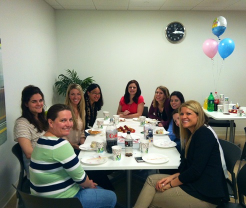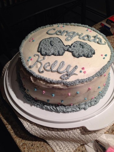 Kelly is 31 weeks today. Our phone app says the baby measures 16 inches long and weighs as much as a coconut. Kelly’s friends from work surprised her with a baby shower at the office. So barring any more surprises, NOW her showers are completed. She got some more great gifts. They also had a cake which one of her friends baked. Some pictures below: